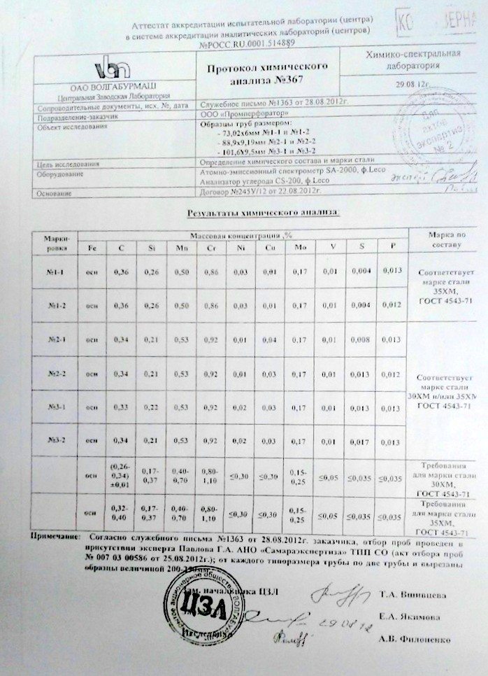 * Химический состав стали соответствует марке 35ХМ. (Приложение1), механические свойства соответствуют прочности «М» (Приложение 2), длина трубы 7 м.